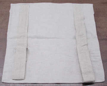 This very large linen haversack was standard for the British Army. It is worn very high on the body. It is secured with three pewter buttons.