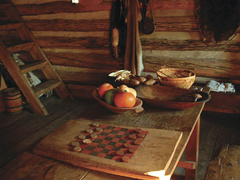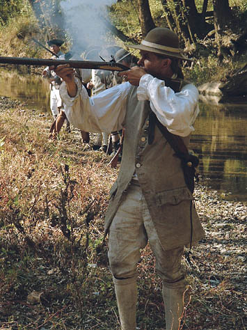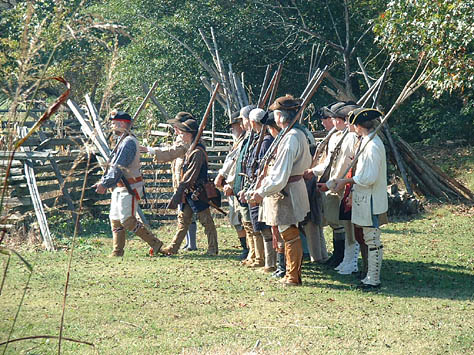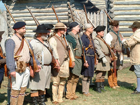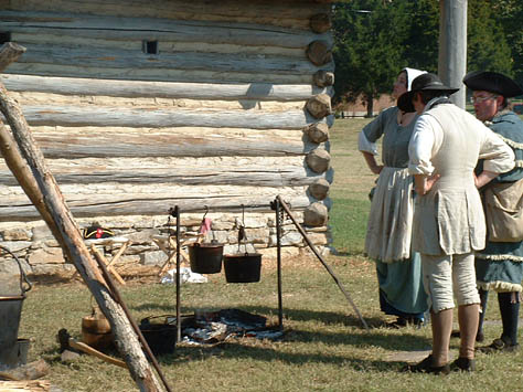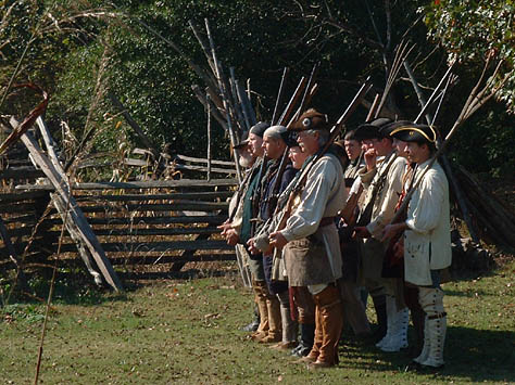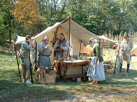 This recreated Fort is the centerpiece of activity at the Spring and Fall events. It is a fun and exciting place for the reenactors to live in and around for the weekend. Attention to detail and authenticity are faithfully recreated here in all aspects of life in the 1780's. The furnished cabins are all extremely accurate in there construction; the blacksmith shop, tool cabin, and tavern are specialized areas of interest for visitors and reenactors alike.