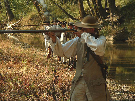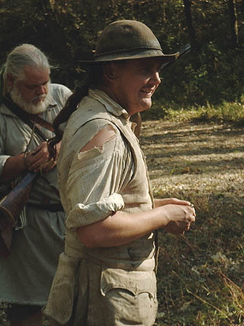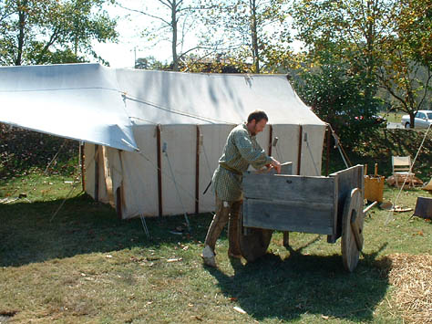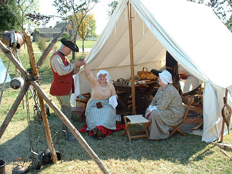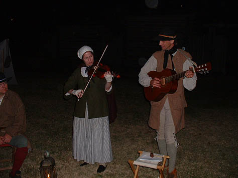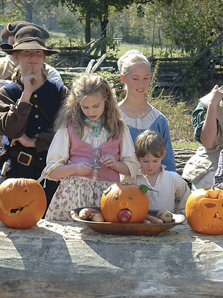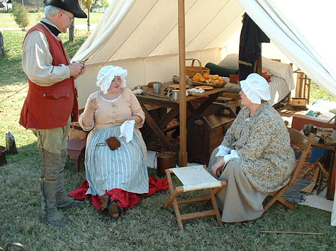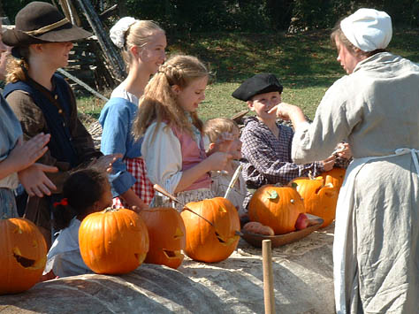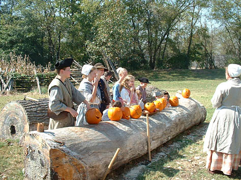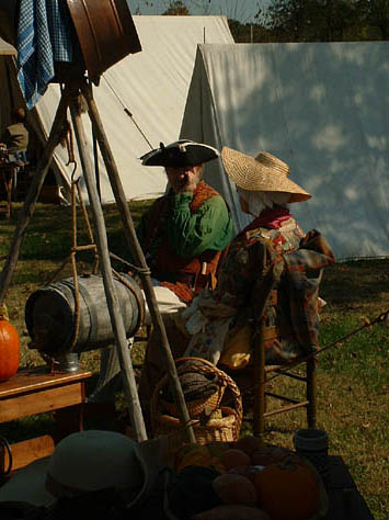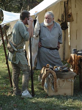 This past October camp was a blessing in many ways... the weather was perfect... fellowship was heartwarming... and the staff was quietly making sure that all ran smoothly. The annual pumpkin carving contest for the kids and the annual "shoot" for the grown-up boys was really fun. The different dye pots were going, the canoe got worked on a little more, and the music Saturday night was great! The Church service on Sunday morning was well done and always a blessing. And last but not least, the visitors were treated to some good living history.