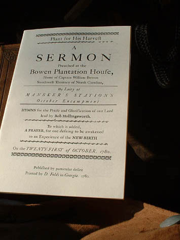 On Sunday, there was a church service in period attire. David Folds led the service. Of note was the period church flyer, put together by David.